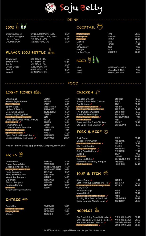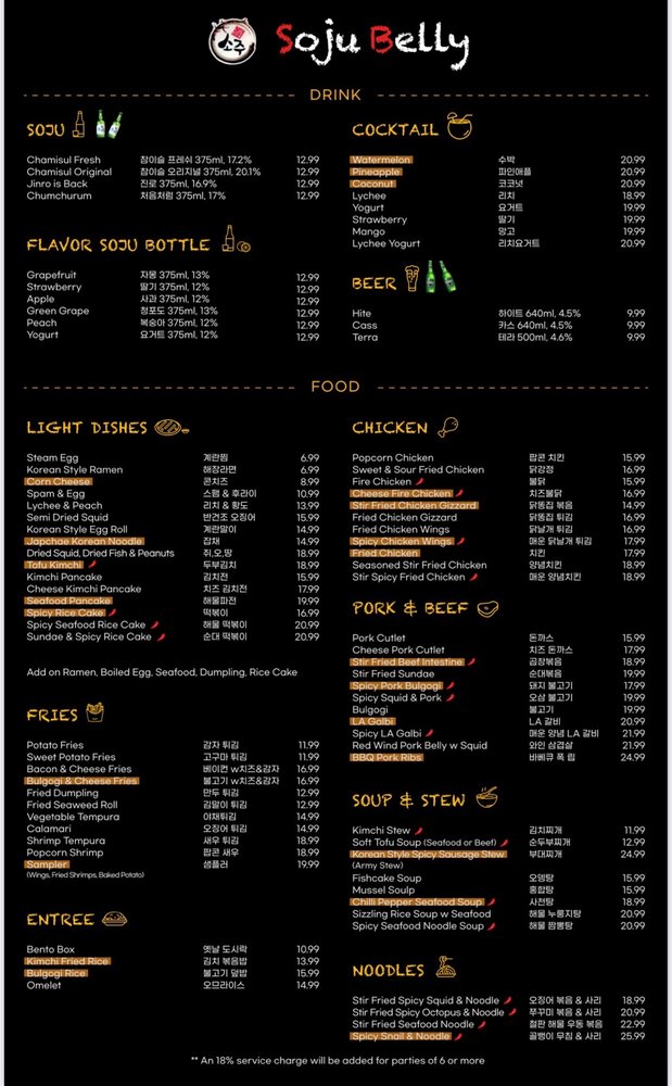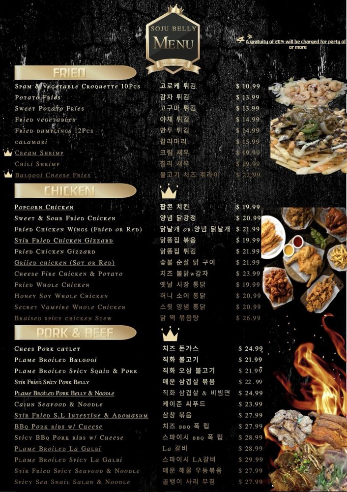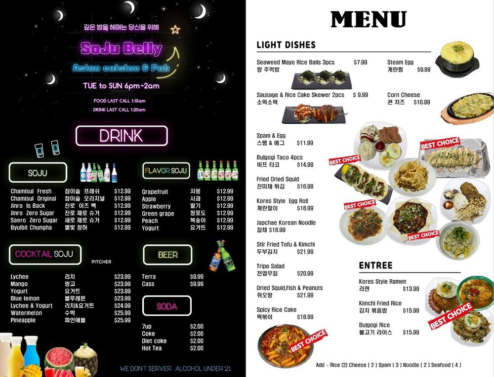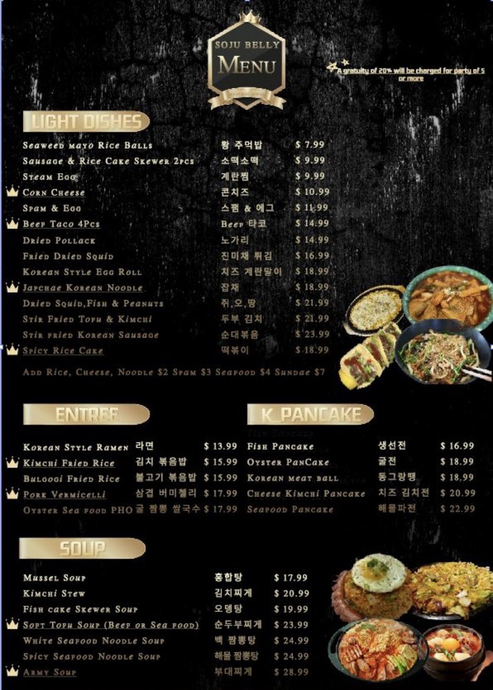 Welcome to Soju Belly, a vibrant Korean bar located in Garden Grove, CA, where culinary creativity meets comforting flavors. The menu showcases an array of dishes that celebrate traditional Korean cuisine with a modern twist.